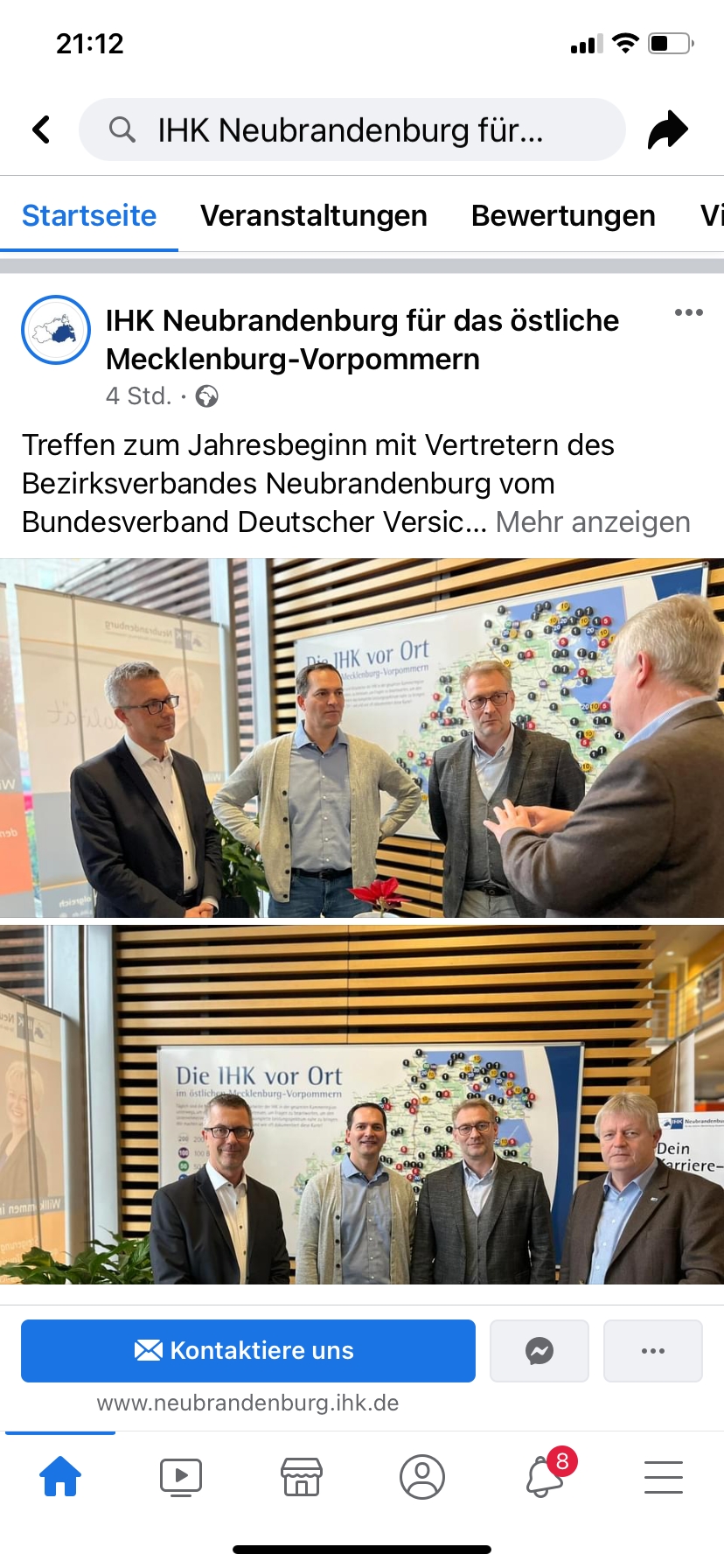 Neben dem Austausch zur Lage in der Branche wurden vor allem die gemeinsame Zusammenarbeit mit Hauptgeschäftsführer Torsten Haasch und Matthias Sachse besprochen. Mit dem BVK organisieren wir den jährlich stattfindenden Branchentag der Versicherungswirtschaft in der IHK Neubrandenburg.