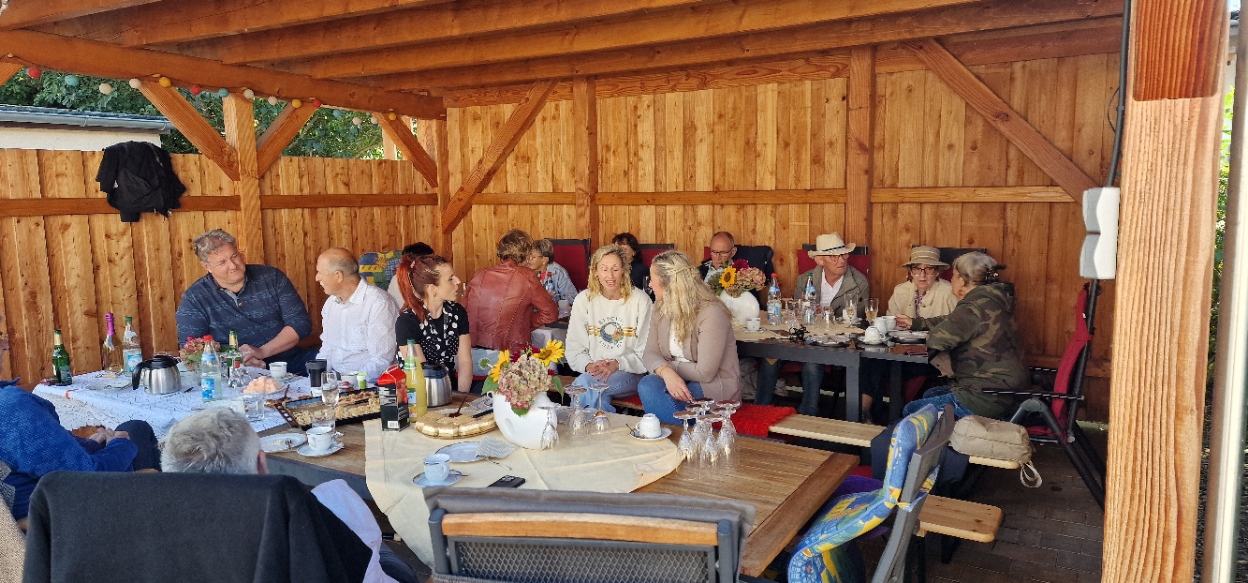 Der Tag war super, natürlich wie immer mit reichlich Kaffee, Kuchen , diversen Salaten, unterschiedlichem Brot und von Fleisch, Bratwurst und diversen Getränken kann man noch heute nur schwärmen, sogar das Wetter war gnädig zu uns. Ganz abgesehen von den vielen tollen , inspirierenden Gesprächen der Kollegen und ihren Partnern. Eigentlich haben die Nichtanwesenden was verpasst.